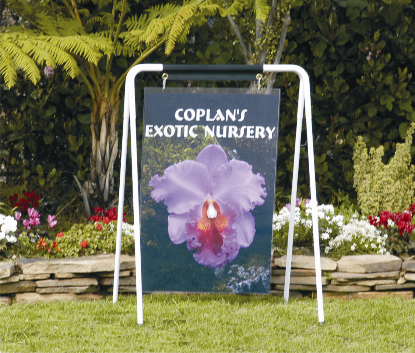 Change Sign in seconds - display two signs per unit. Blanks quickly slide in and out and stay securely in place, no clips, bolts or added parts. Molded-in stacking lugs nest into each other when units are stacked which prevents sliding. All plastic - no rust, splinters, discoloration or maintenance.