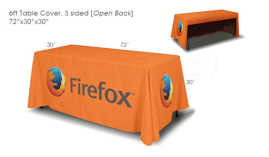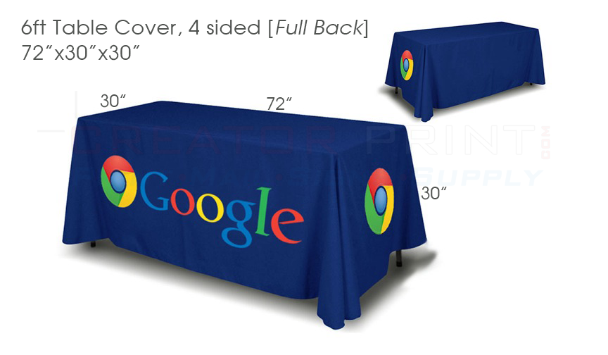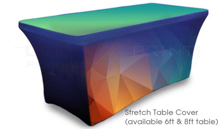 Our standard table cover is a great table topper for trade shows, exhibitions, and any presentations. Our table covers are dye sublimated and are 100% washable if it ever gets dirty. This table cover is made from our 8.8 oz. polyester table fabric that drapes over 3-4 sides of a display table. The table cover is sewn with rounded corners and hang approximately 2" above the floor. Complete your presentation with our simple and cost-effective table cover.