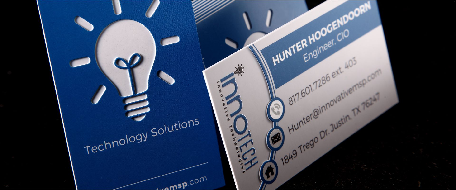 Matte Silk Coating Cards is the newest innovative creation in the business card industry. Exclusive to Designline Graphics Inc, this card maximizes the effect of design options, such as color edging, custom die cuts, embossing, foiling and Spot UV.